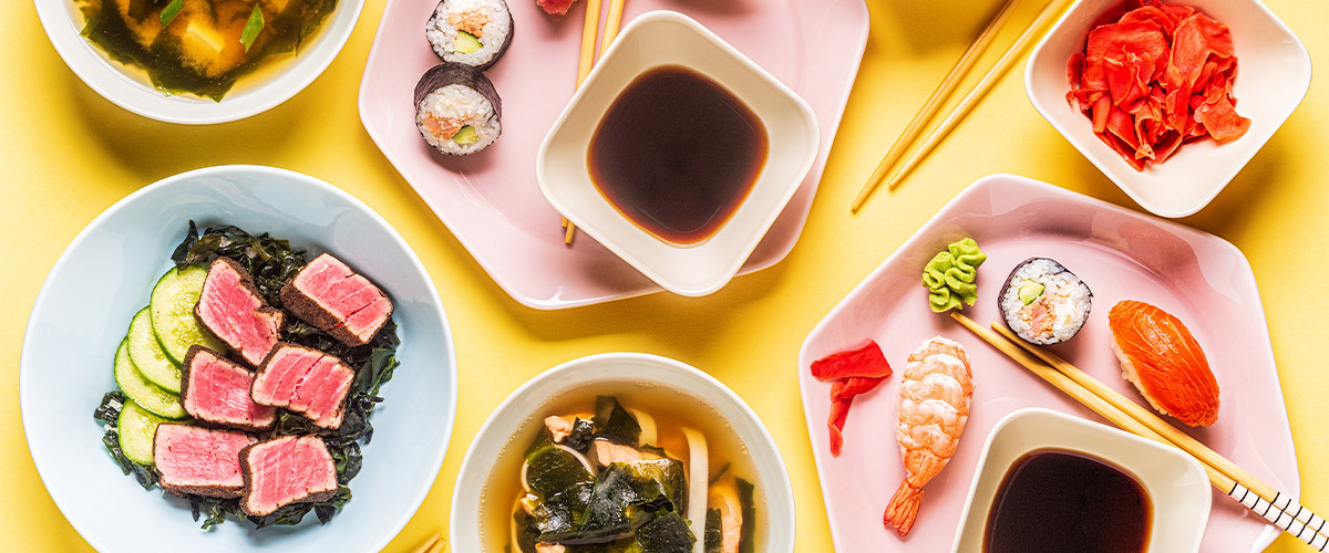 • Japonia – harmonia i umami w sushi, ramenach czy kaiseki. Tradycja oparta na sezonowości i perfekcyjnej prezentacji potraw. Minimalizm składników podkreśla ich naturalny smak – od świeżych ryb w sushi po miso i fermentowane dodatki w ramenach. Japońska kuchnia to także tempura, delikatne sashimi i słodycze wagashi serwowane do ceremonialnej herbaty, wszystko przygotowane z niezwykłą dbałością o estetykę.